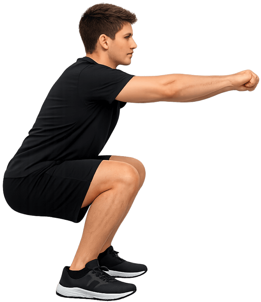Real-time AI rep counting. Pushups for Upper Body Performance. Squats for Lower Body Performance. Burpees for Cardio Performance. One score 0-1000. Ranked by age and gender.